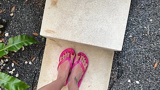 Blonde Poolside Footjob and Wet Tease